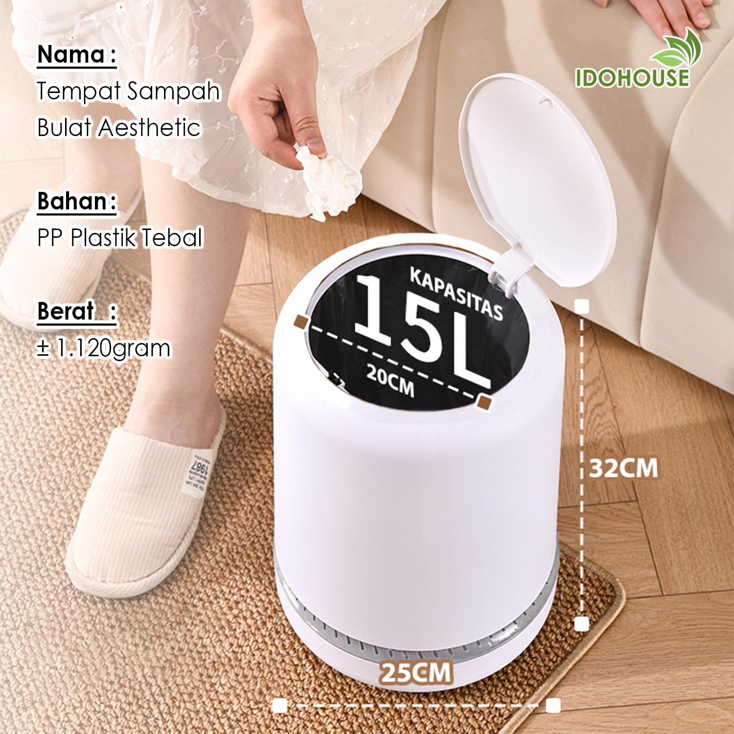 FREE PLASTIK SAMPAH Tong Sampah Bulat Ada Tutupan Kapasitas 15Liter Warna Putih Kokoh Kuat Tebal F01B